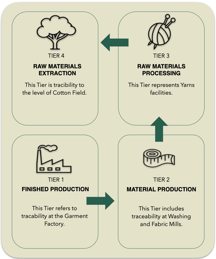 Percentage of our Onboarded suppliers who offer traceability at each tier level.